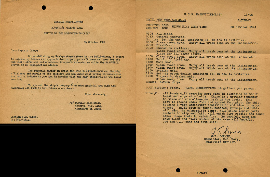 24 October, 1944, and DRILL AND WORK SCHEDULE