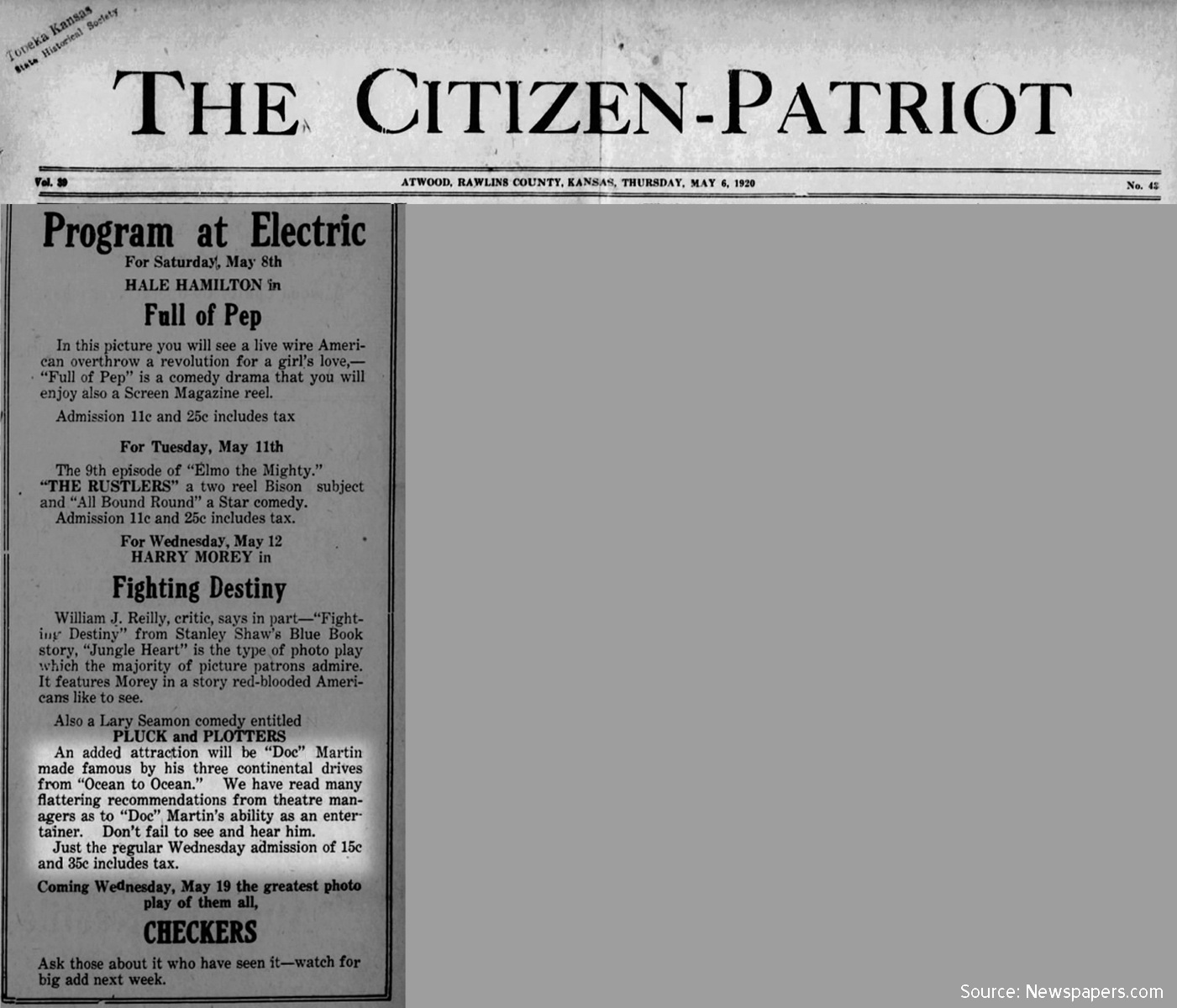 (1917 newspaper clipping) (1920 newspaper clipping)