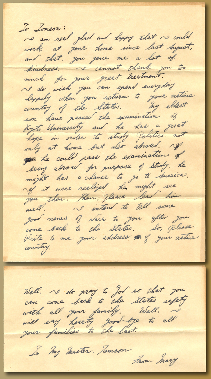 Letters from Mary-san to Major Thompson.